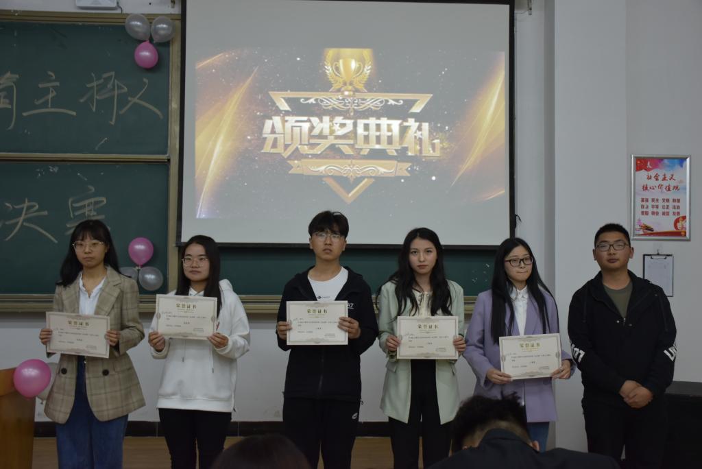 晚上七点钟比赛开始,主持人澎湃的开场白拉开了比赛的序幕。巧言引玉,妙语生花,八位选手,有序开始了他们的演讲,首先是自我介绍,然后开始各个参赛选手的演讲。接下来是我们的绕口令环节,有些选手都能流利的说出那些绕口令,有些选手显得不那么顺畅,比赛现场氛围也欢快起来。接着是选手根据所给的词语进行即兴演讲,非常考虑选手临场发挥能力,部分选手在此环节惜败。最后是根据所给话题演讲,也是精彩异常。相比于初赛,决赛精彩了不少,竞争也非常激烈。最后经过文体部算分决出胜负,排出名次并颁奖。