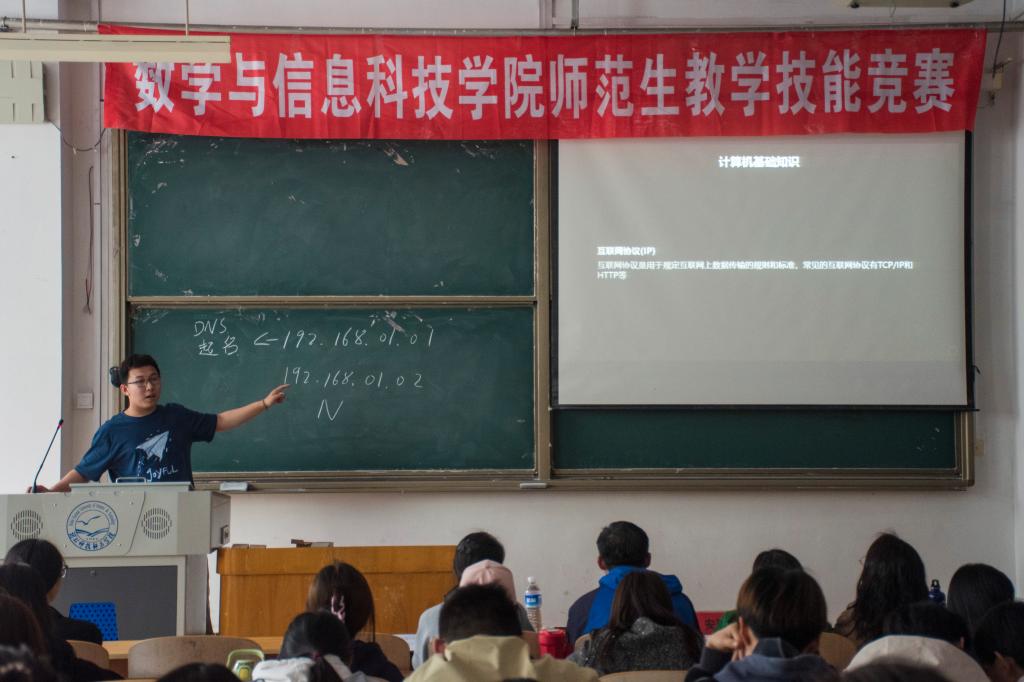 比赛分为普教组(理)和职教组2个组别进行,邀请学院专任教师作为评委。赛场上,选手们思路清晰、语言生动,板书布局合理、重点突出,现场氛围十分活跃。赛后,评委老师从课前导入、课堂讲解、教师礼仪等多个方面对选手们的表现进行了点评并给出有效的建议。经过激烈角逐,每个组别各评选出1名优秀选手,分别和课件制作比赛、中小学班会设计方案比赛的优胜者组成职教组和普教理科组两支队伍,参加校级师范生教学技能竞赛决赛。