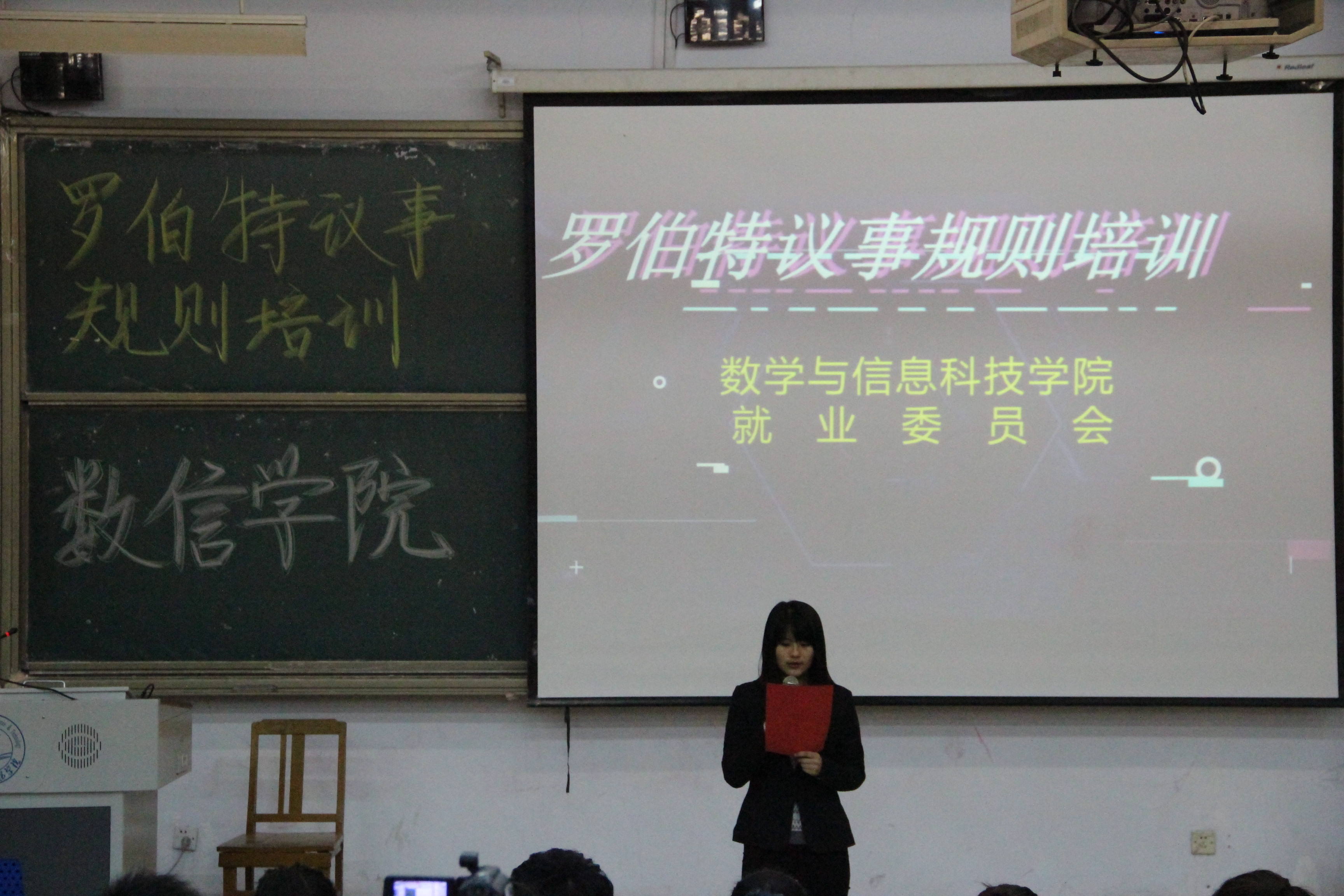 为了培养学生的会议组织能力,提高学生的就业竞争力,2017年12月3日晚7:00,必赢线路检测3003在逸夫楼B104举办了学生干部罗伯特议事规则培训。学院负责就业的教师和全体学生干部参加了此次培训。