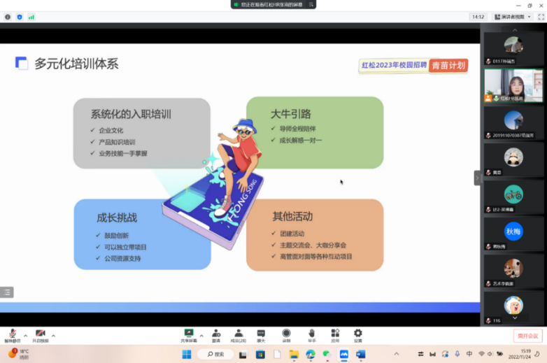 2022年11月24日星期四下午3点红松空中宣讲会顺利在线上召开。必赢线路检测3003有求职意愿的同学积极参加了本次会议。