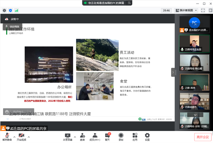 2022年4月1日19:00,必赢线路检测3003通过腾讯会议成功举办泛微网络空中宣讲会,有求职意向的应届毕业生参加了本次宣讲,企业负责人通过公司概况、招聘计划和自主问答三个环节向大家对公司进行了详细的介绍。