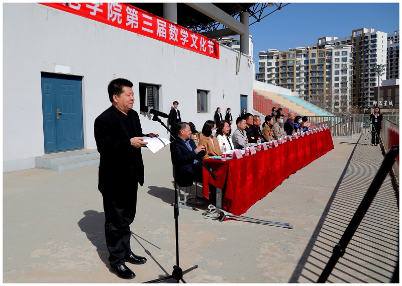 校党委常委、副校长冯瑞银在讲话中肯定了数学文化节为全校师生营造了爱数学、学数学、用数学的良好氛围,希望全校师生以本次活动为契机,加快基础教育课程改革,为深化学校高质量发展,建设特色鲜明高水平应用型大学做出更大的努力并宣布学校第三届数学文化节开幕。
