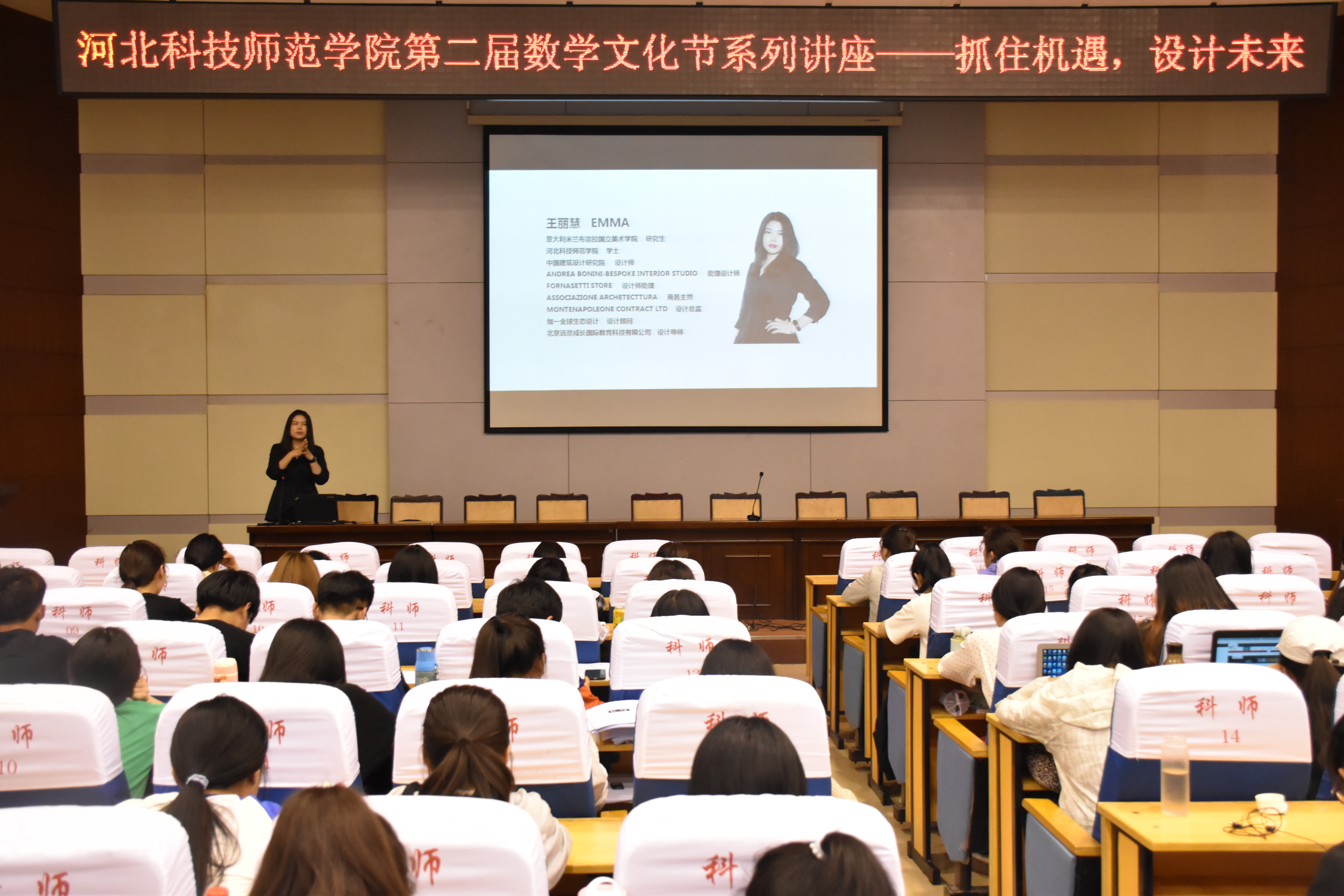 2019年5月16日下午,必赢线路检测3003在秦皇岛校区学术交流中心举办了学校第二届数学文化节系列讲座。特邀中国建筑设计研究院设计师王丽慧作题为“抓住机遇,设计未来”的专题报告,必赢官网的数学与应用数学、应用统计、计算机科学与技术、数字媒体技术等各专业师生400余人聆听了此次专题报告。