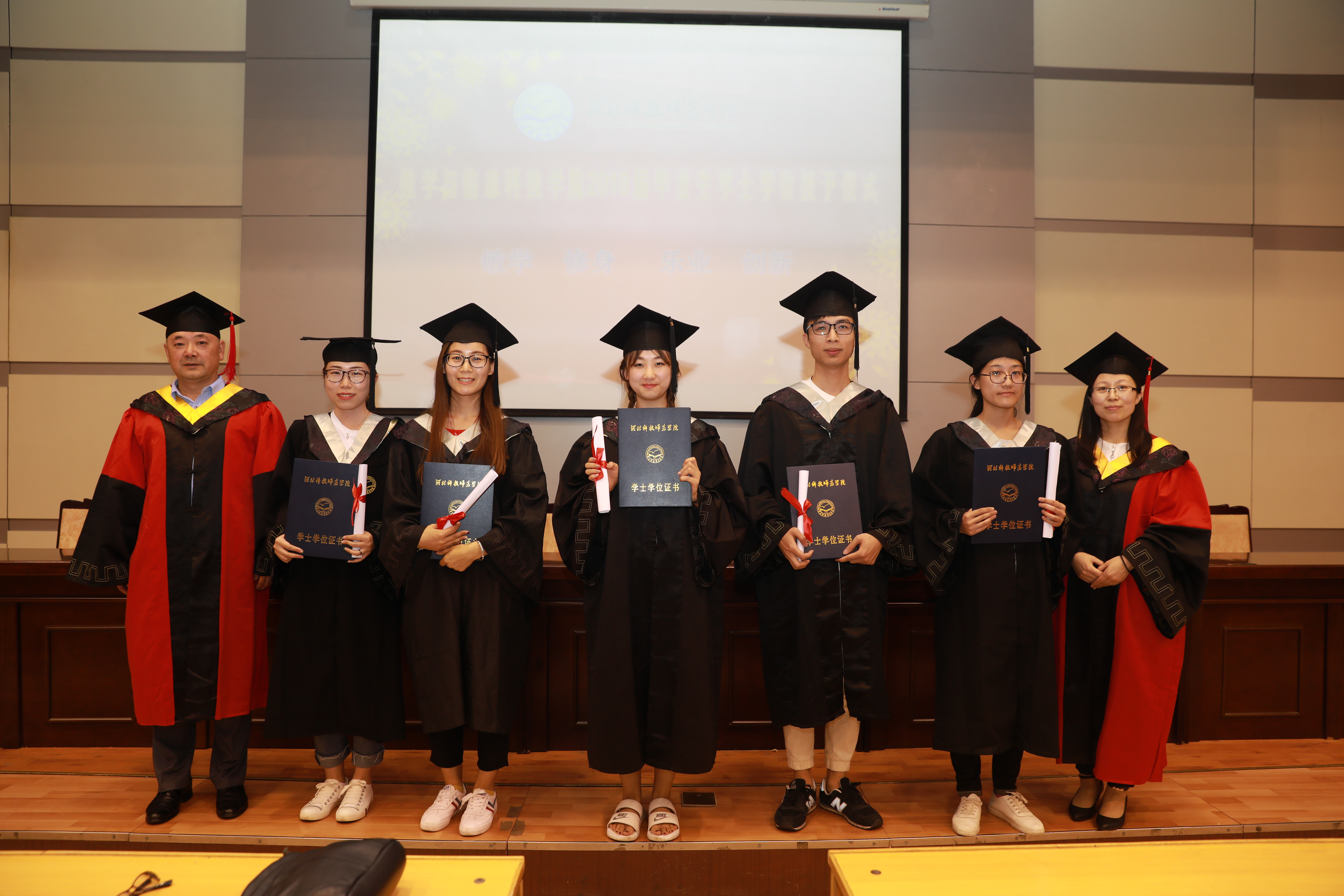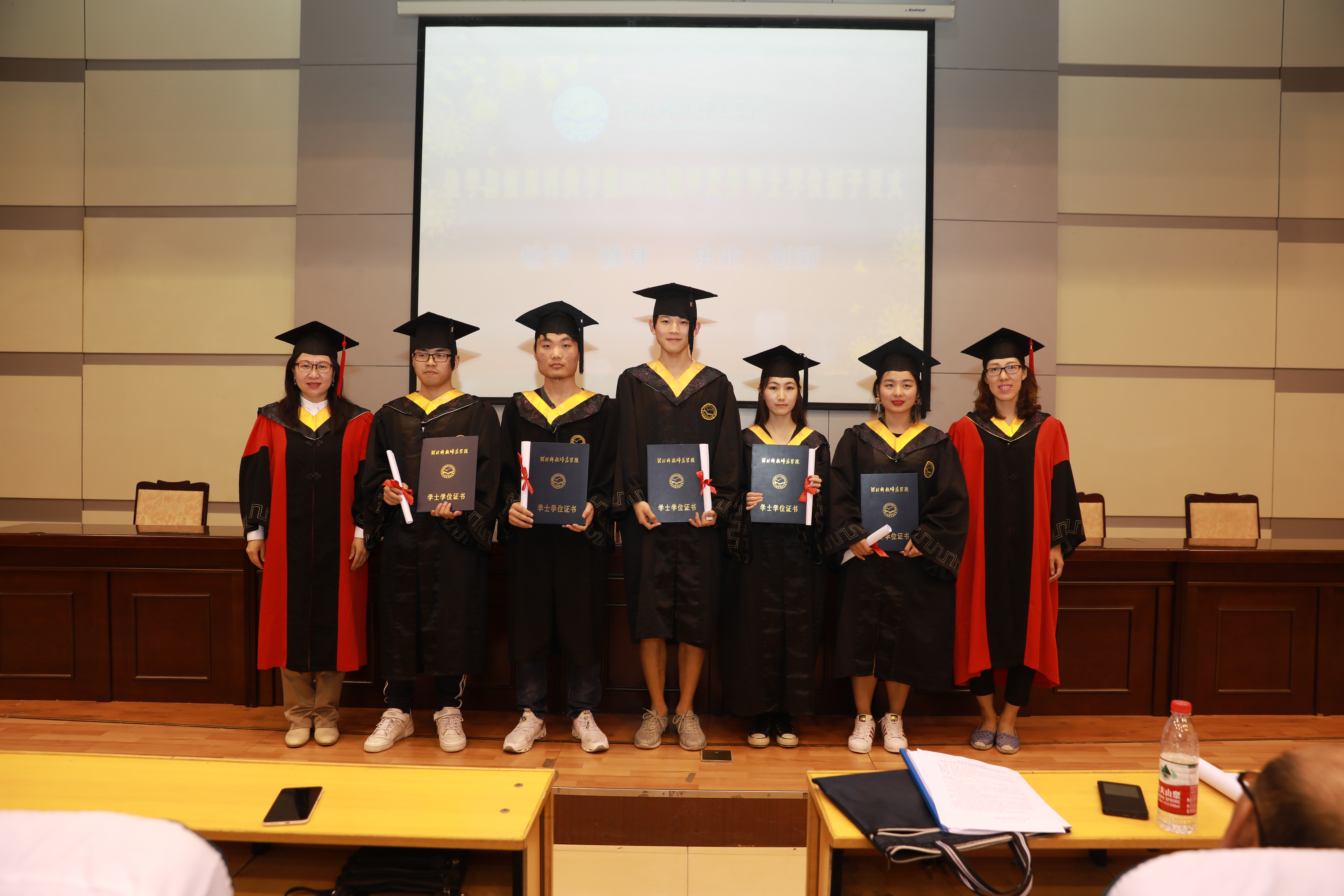 2018年6月12日,必赢线路检测3003在秦皇岛校区学术报告厅成功举办2018届毕业生学士学位授予仪式。必赢官网党委负责人、行政负责人、学院教师及2018届本科毕业生共计300余人参加了本次仪式。