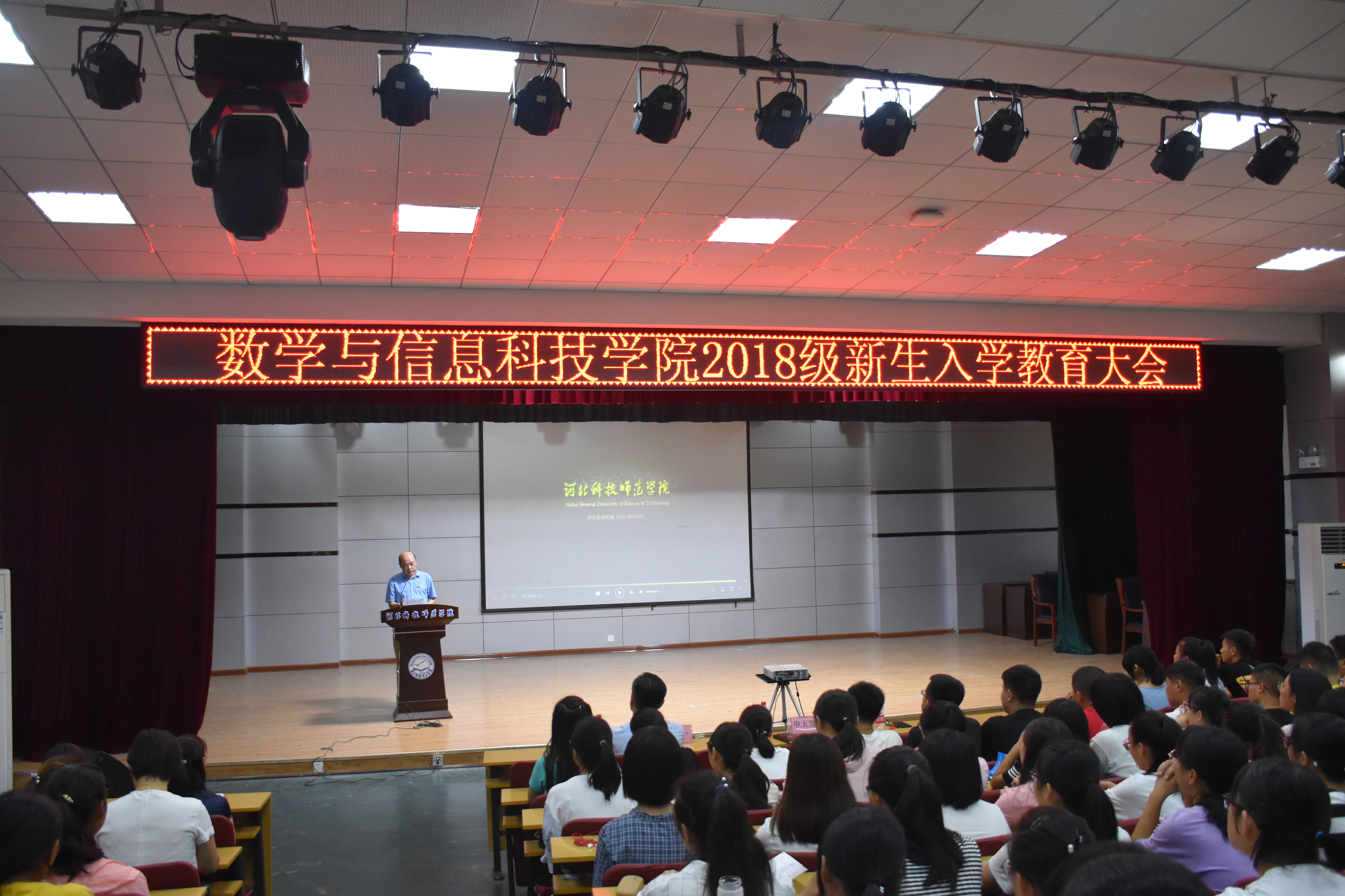大会开始,与会师生全体起立,奏唱中华人民共和国国歌。接下来,学院行政负责人致辞,对必赢官网2018级新生的到来表示热烈的欢迎,并从学院历史沿革、专业设置、办学特色、教学科研、师资力量、学生管理、实验实训保障和教学科研基地建设等方面向新生作了简要介绍,同时从新生“尽快实现从中学到大学的角色转变”、“尽快确立一个目标”、“养成利用学校各种智力和环境资源的习惯”、“树立集体意识,培育班级文化”等方面提出了四点希望和要求。最后学院党委负责人在讲话中希望必赢官网2018级新生要高举习近平新时代中国特色社会主义思想伟大旗帜,要牢记习近平总书记“爱国、励志、求真、力行”的嘱托,要学会运用马克思主义立场观点方法观察世界、分析世界,为自己探索求学之路、成长成才之路打下科学思想基础。要大力发扬“敏学修身 乐业创新”校训精神,积极参与支持班团工作,积极靠近党组织,做一个理想信念坚定、科学求真、严谨务实、自强、自立、自信的人。