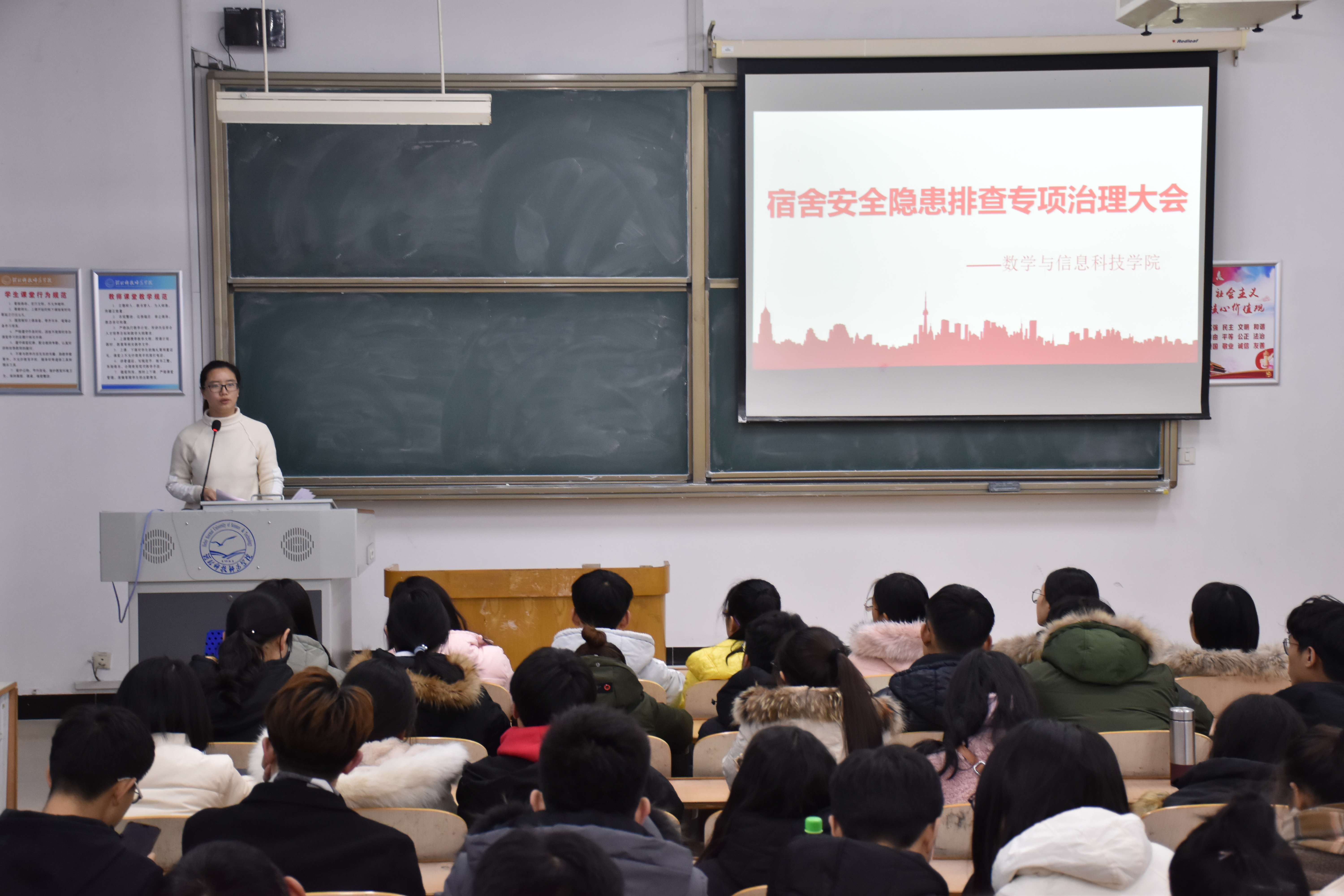 按照学校党委行政安排部署,贯彻落实上级加强校园安全严格管控相关规定要求,严防安全事故发生,保障每位学生人身财产安全,保障学校正常安稳的教学生活秩序,2018年12月7日晚七点,必赢线路检测3003在逸夫楼A109召开了宿舍安全隐患排查专项治理大会,依法依规进一步加强学生宿舍安全管理。必赢官网学工办相关老师、各班级生活委员参加了此次会议。