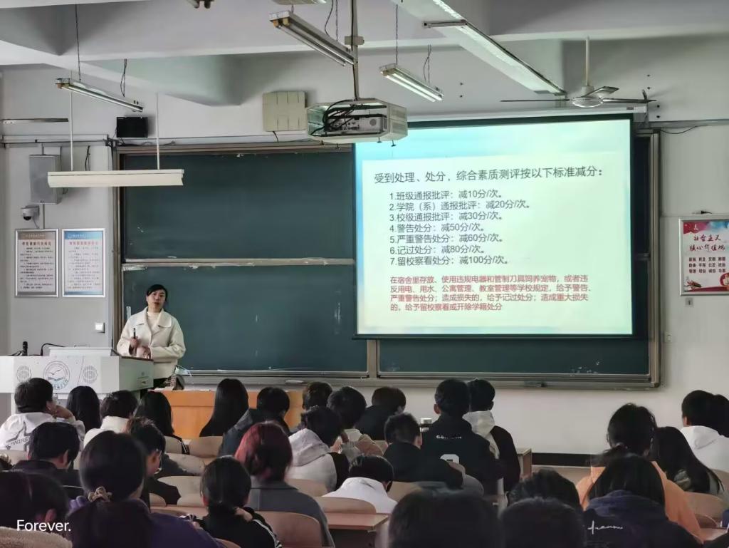 为提升学生安全意识,营造温馨公寓氛围,2024年10月25日下午,必赢线路检测3003在逸夫楼A205召开学生公寓综合治理及信息管理工作教育培训会。培训由学院负责学生公寓综合治理工作的辅导员老师主持,全体2024级班长、生活委员、宿舍长参加会议。
