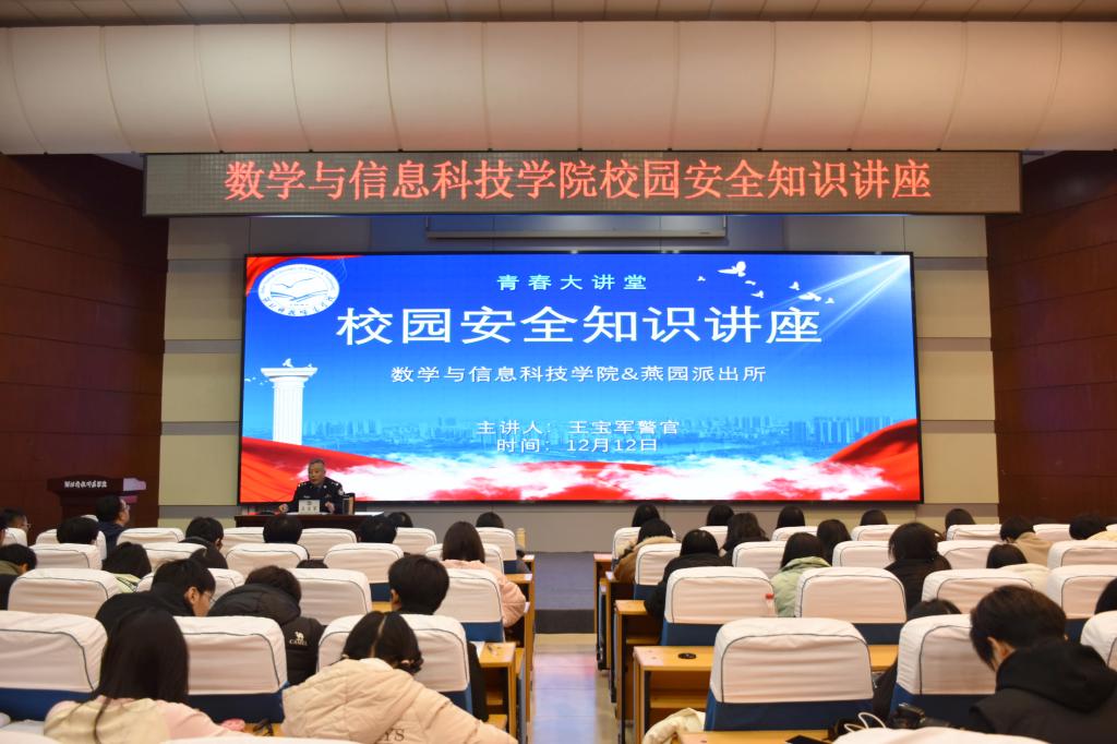 为了进一步加强校园安全教育,提高师生的安全意识和自我保护能力,12月12日下午,必赢线路检测3003邀请秦皇岛市公安局海港分局王宝军警官作为主讲人,在秦皇岛校区学术交流中心举办了一场校园安全知识讲座,学院专职辅导员及420余名学生参加了此次活动。