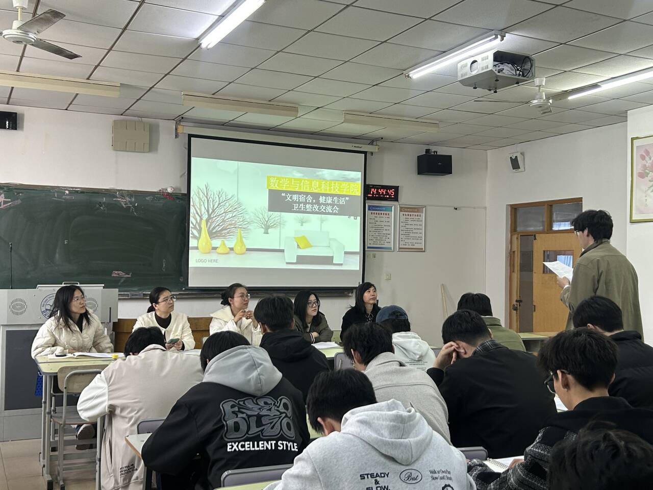 会上,学生工作负责同志为同学们从“环境育人”角度系统阐释宿舍卫生治理的重要性,强调整洁的居住环境既是学生身心健康的重要保障,更是培养责任意识、涵养文明素养的有效载体;接下来,负责学生公寓综合治理及信息管理工作的老师通报了近期宿舍卫生检查情况;最后,19位宿舍长依次上台交流,分享了目前存在的突出问题以及具体整改措施。