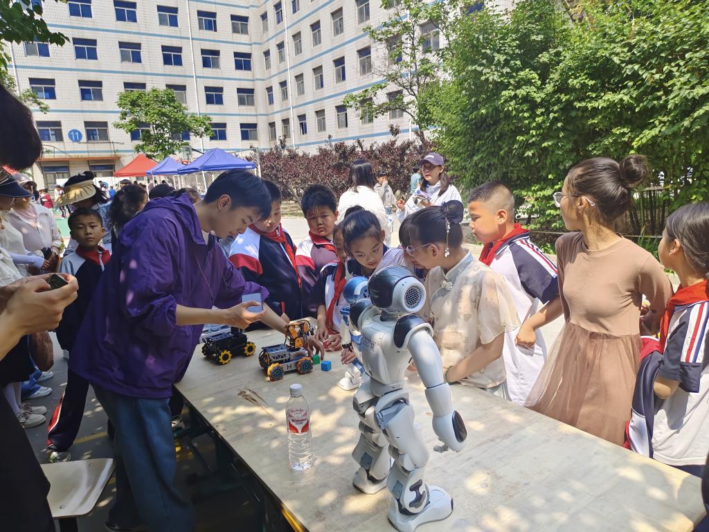 活动现场,憨态可掬的机器人一登场便成为焦点。学生通过编程指令让机器人完成街舞旋转、健身等一系列动作,展台前爆发出阵阵欢呼,孩子们争相举手与机器人“击掌”。智能分拣小车的同样吸引力小朋友的视线,团队成员通过可视化编程界面,现场演示小车如何识别颜色、自动分拣不同材质的积木。孩子们趴在展台前,看着小车灵活穿梭搬运积木,时不时发出“哇”的惊叹声,小手还忍不住跟着小车的轨迹比划。