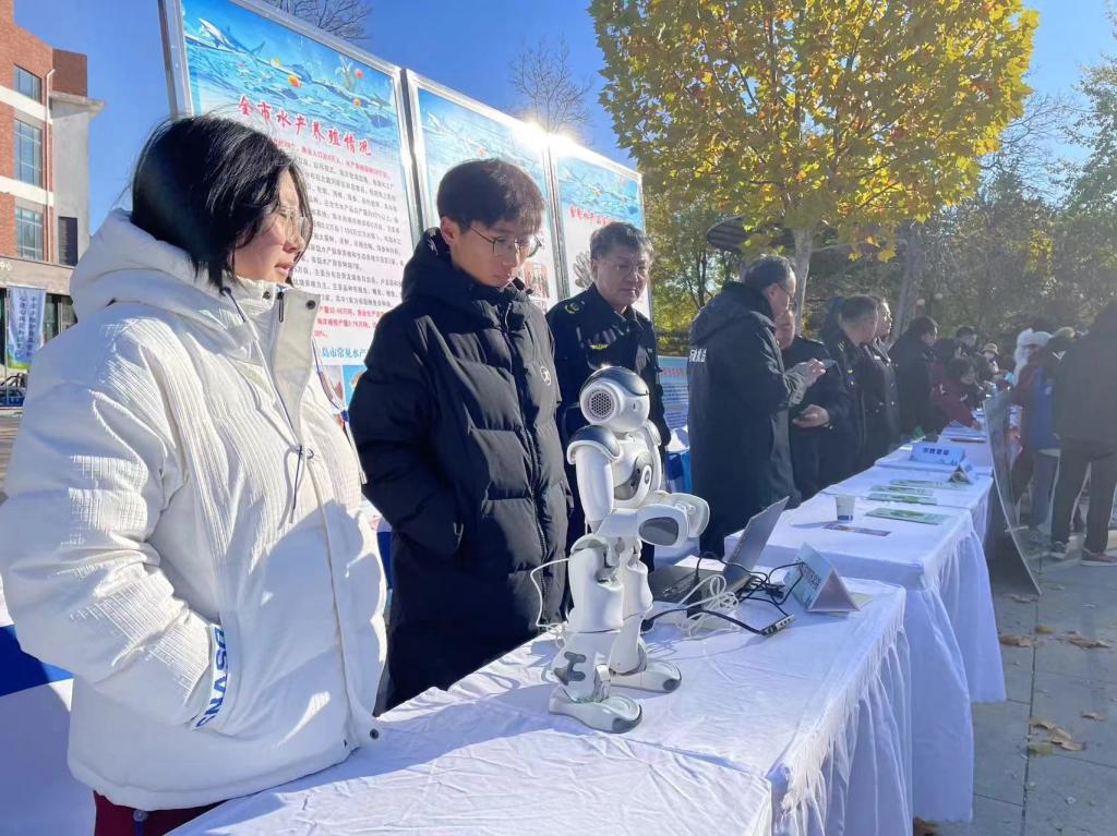 海联基地成员操作机器人宣传食品安全