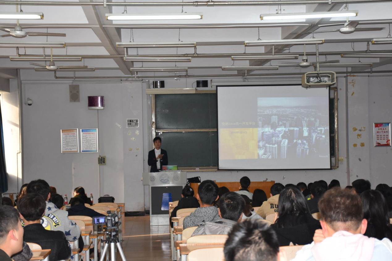 2017年10月30日,必赢官网特邀请东软睿道公司的高级软件工程师王悦先生来我校为学生们进行了题为《基于软件工程生命周期的全民飞机大战项目分析与开发》的讲座。网络工程15级和计算机科技17级的学生参加了此次讲座。王悦先生在报告中讲解了企业实际开发软件的生命周期与概况,并详细介绍了游戏软件的开发流程。学生通过此次习,将课堂上所学到的理论知识与企业的实践相结合,受益匪浅。