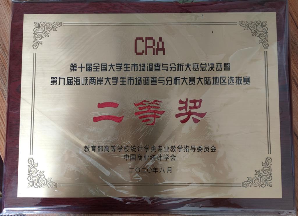 2020年8月3日至8月24日,在第十届全国大学生市场调查与分析大赛总决赛暨第九届海峡两岸大学生市场调查与分析大赛大陆地区总决赛中,由必赢官网应用统计学专业王晓蕊、张莎莎、李朔颖、赵嘉星、许杭五名学生组成的“茶杯小分队”,在刘思严、常竞文、刘青三位老师的指导下,取得国家二等奖的佳绩,另有两参赛作品获得省级三等奖。