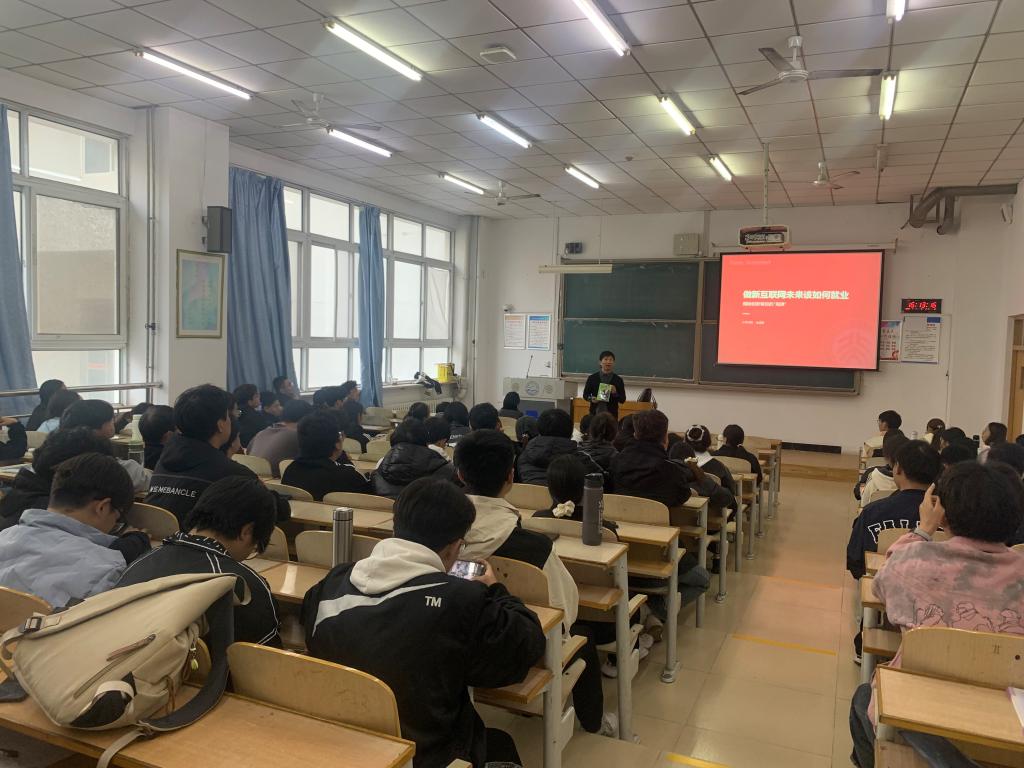 创新创业周周五(2024年10月25日)下午14:00-15:55计算机科学与技术2404-05班60名学生在A112教室、16:05-18:00计算机科学与技术2201-03班90名学生在A111教室聆听了北大课工场公司金满铮老师给大家带来的做新互联网未来该如何就业讲座。