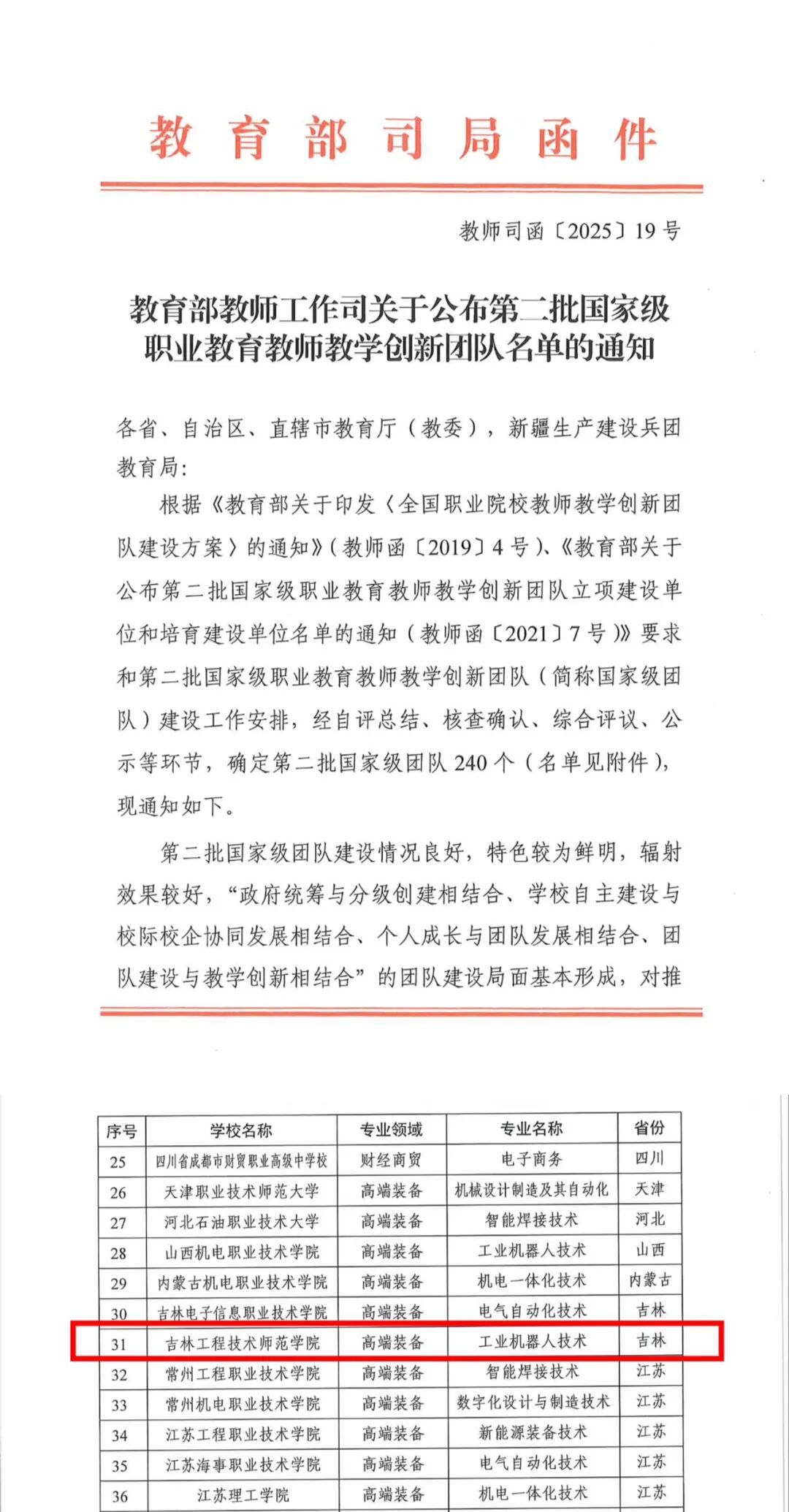 近日,教育部教师工作司公布了第二批国家级职业教育教师教学创新团队名单,beat365官网工业机器人技术职业教育教师教学创新团队圆满完成各项建设任务,顺利通过验收。标志着beat365官网在深化教育教学改革、打造高水平“双师型”教师队伍方面取得了重要成就,为全国职业教育教师团队建设提供了可借鉴的“工师”样板。