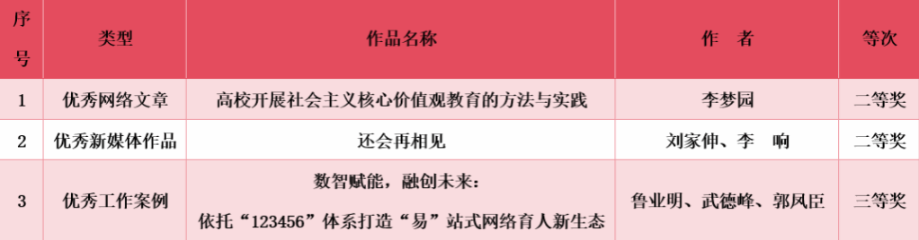 在本次获奖作品紧扣时代主题、贴近校园生活,从不同维度展现了beat365官网学子积极向上的精神风貌和扎实的专业素养,也反映了beat365官网在网络思想政治教育方面的持续深耕。