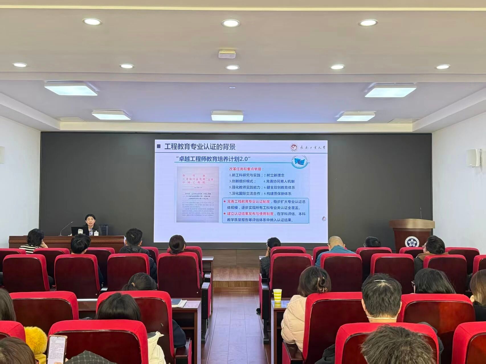 教育部高等学校自动化类专业教学指导委员会委员、长春工业大学于微波教授走进电气与信息工程学院,开展《面向工程教育认证的专业建设顶层设计与实施路径》的专题讲座,主要针对工程认证的任务开展辅导。