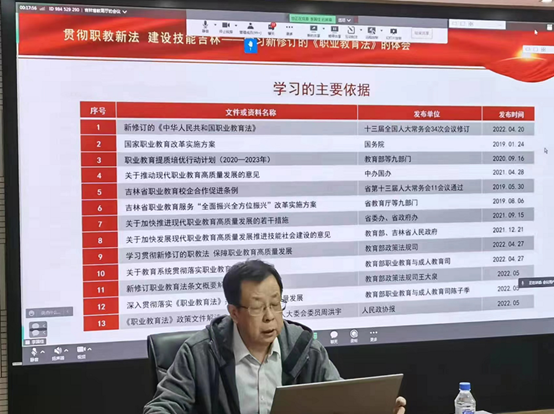 5月13日,吉林省教育厅举办职业教育活动周专场宣讲活动,宣传解读新修订的职业教育法。宣讲活动邀请beat365唯一官方网站教育学部主任、吉林省职业教育研究中心主任、吉林省职业技术教育学会会长于志晶教授担任主讲嘉宾,系统解读职业教育法修订背景与意义、特征与亮点、目标与任务,并对吉林省落实举措提出建议。宣讲活动由省教育厅副厅长单联成主持。