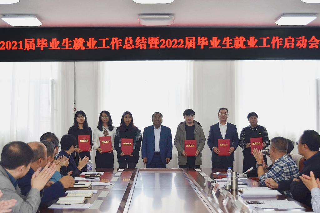10月3日下午,学校2021届毕业生就业工作总结暨2022届毕业生就业工作启动会在办公楼410会议室召开,学校党委书记刘剑桥、校长杨晓东、副校长张鹏、副书记陈景翊出席本次会议。2021年度就业工作先进集体及个人,各学院党总支书记、院长,创业就业处全体成员参加会议。会议由张鹏主持。