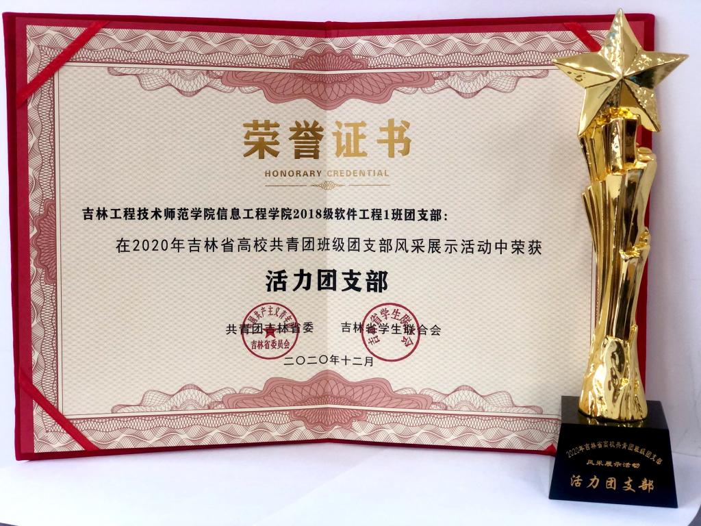 12月5日,由共青团吉林省委、吉林省学联主办的2020年吉林省高校共青团班级团支部风采展示活动在东北师范大学人文学院举行。beat365官网信息工程学院软件工程1841班团支部获得2020年吉林省高校“活力团支部”称号。