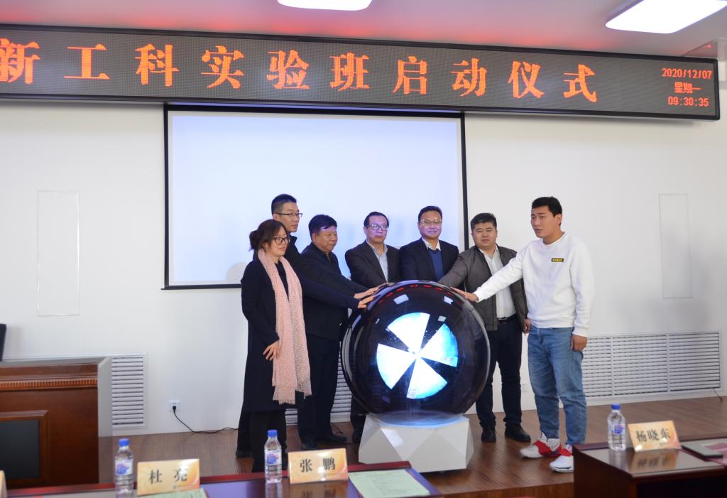 仪式上,与会领导嘉宾共同按下象征团结合作的新工科实验班启动球。