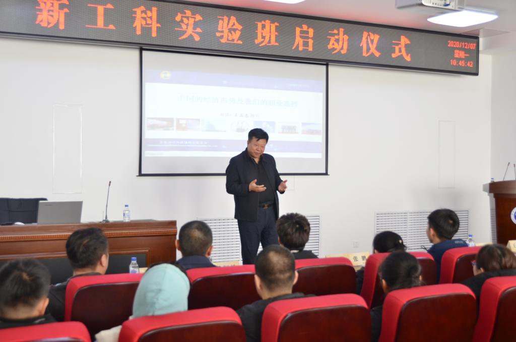 启动仪式后,副校长张鹏、副董事长王立志分别做学术报告。张鹏在报告中,从国家经济形势和世界科技革命对新我国新工科的驱使和推动,阐述了新工科的时代背景;阐述了新工科的内涵以及新工科建设的势在必行;详细介绍了beat365官网新工科实验班的实施方案。