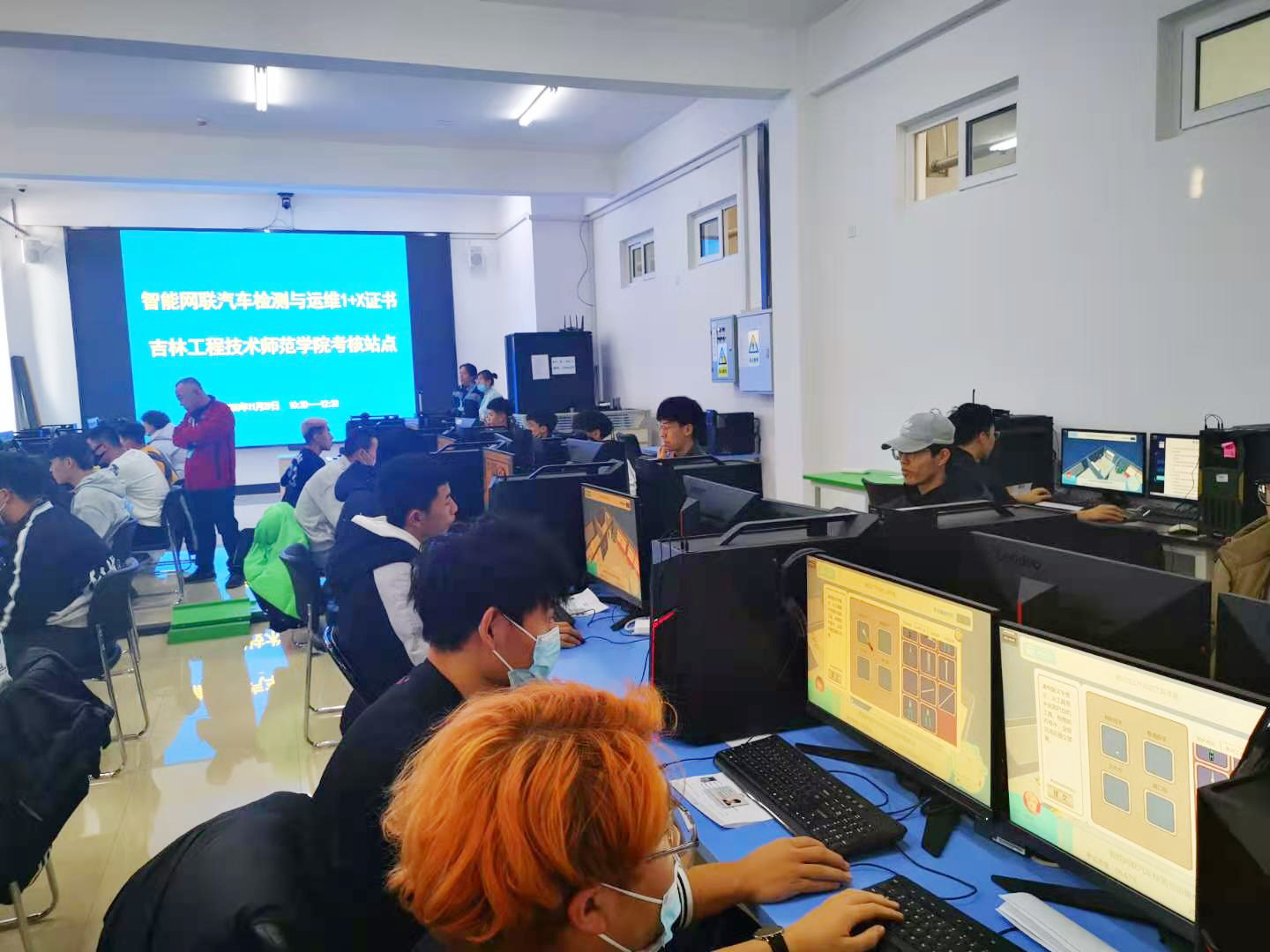 此次汽车工程学院共计30名学生报名参加了“智能网联汽车检测与运维证书”考核。考核工作得到了学校领导高度重视,在教务处、网管中心及汽车工程学院师生共同努力下,圆满地完成了beat365官网首场1+X证书的培训、考核。
