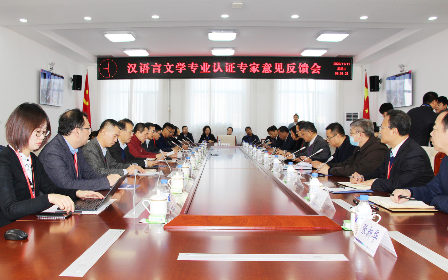 11月11日上午,汉语言文学专业认证现场考查专家组意见反馈会在学校办公楼410会议室召开。认证专家组成员、省教育厅领导、评估机构负责人、学校领导、相关职能部门及单位负责人,传媒学院领导班子成员、专业负责人、教学秘书、教师代表,其他师范专业所在学院院长及专业负责人等参加会议。专家组组长李向农主持会议。
