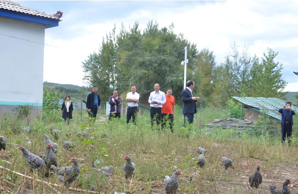 随后,学校领导一行来到扶贫项目——村办生态养鸡场实地参观考察。在养鸡场,领导查看了生态鸡的长势,询问了鸡场的养殖管理、经营前景、经济效益等。