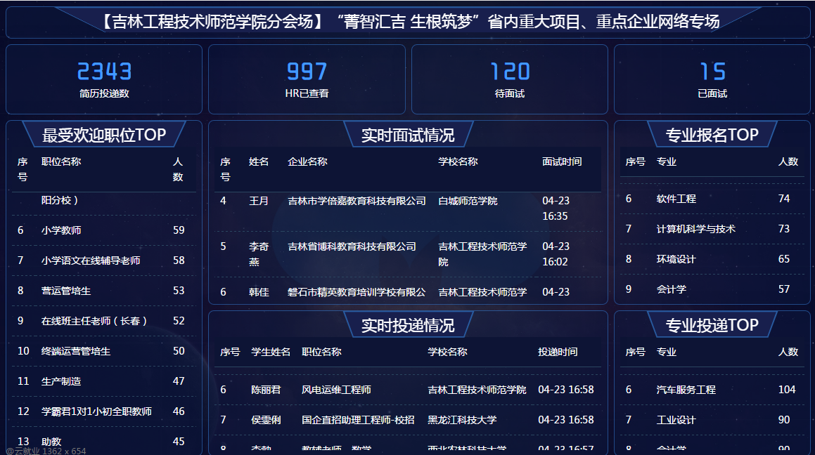 为贯彻落实吉林省教育厅要求,突出发挥高校服务地方经济发展的作用,在吉林省教育厅的统一部署下,beat365官网于4月23日承办了吉林省高校“菁智汇吉、生根筑梦”省内重大项目、重点企业网络专场招聘会吉林工师分会场招聘会。