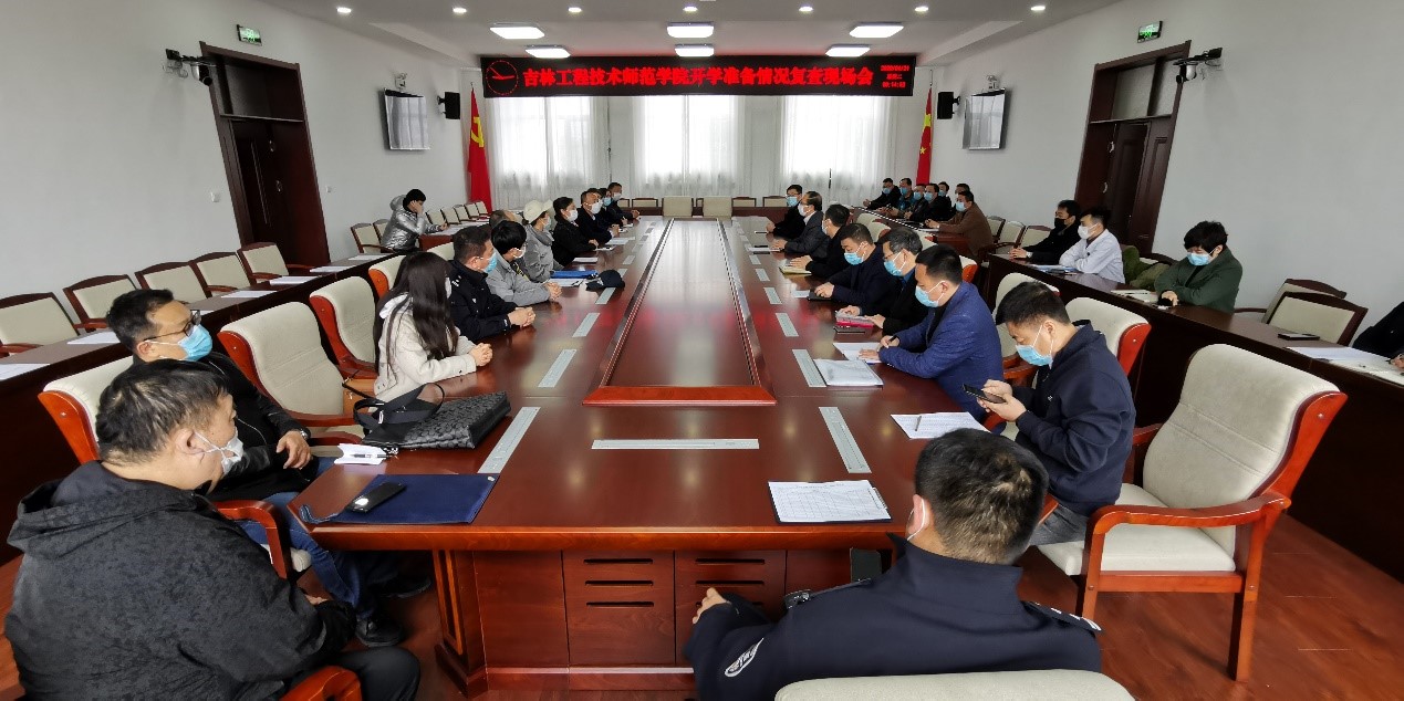 4月21日上午,在办公楼410会议室,宽城区教育局组成检查组,由杨春艳副局长带队,一行12人来校,对beat365官网开学准备情况进行复查。校领导杨晓东、曹国亮,党委常委张新华、张存贵出席会议,防控各工作组组长及相关人员参加会议。