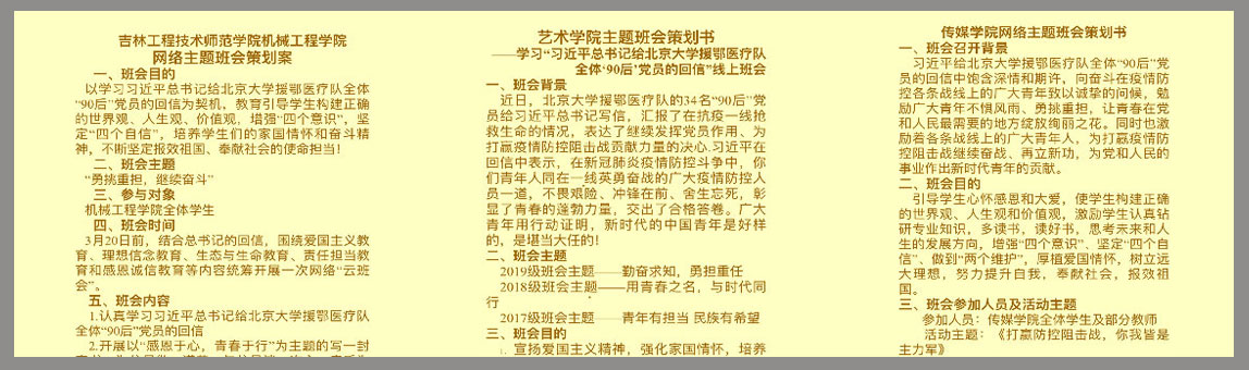 本次活动严格纪律要求,确保班会高标准、高质量完成。网络“云班会”是特殊时期开展学生思想政治教育工作的重要途径,师生们高度重视,杜绝怠慢思想。围绕班会主题,制定方案,统筹安排,各环节都经过缜密的设计和落实,并要求班会覆盖全部班级、全体学生。围绕习近平总书记回信精神,结合beat365唯一官方网站重点打造的校园文化活动品牌——“五爱”教育工程开展相关内容,激发广大学生爱国主义热情,教育广大学生增强“四个意识”、坚定“四个自信”、做到“两个维护”。引导学生树立高度的责任担当意识,积极传播正能量,为疫情防控做出贡献。引领学生认知生命、敬畏生命和珍爱生命,激励学生认真钻研专业知识,思考人生发展方向。培育学生心怀感恩与大爱,做懂感恩、知回馈的人。