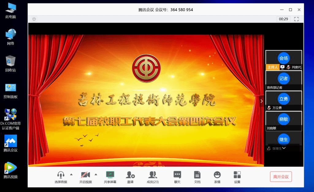 3月18日,学校第七届教职工代表大会第四次会议以网络视频形式胜利召开。会议聚焦全力推进特色高水平应用型大学建设进行了安排部署,明确了2020年及今后的工作方向与要求。学校党委书记栾立明,党委副书记、校长杨晓东,纪委书记左伟,副校长张鹏,党委副书记陈景翊,副校长曹国亮,副校长宋立军,党委常委张新华、张存贵及主席团成员出席会议,正式代表和列席代表、特邀代表通过同步视频会议连线参会。会议由党委副书记陈景翊主持。
