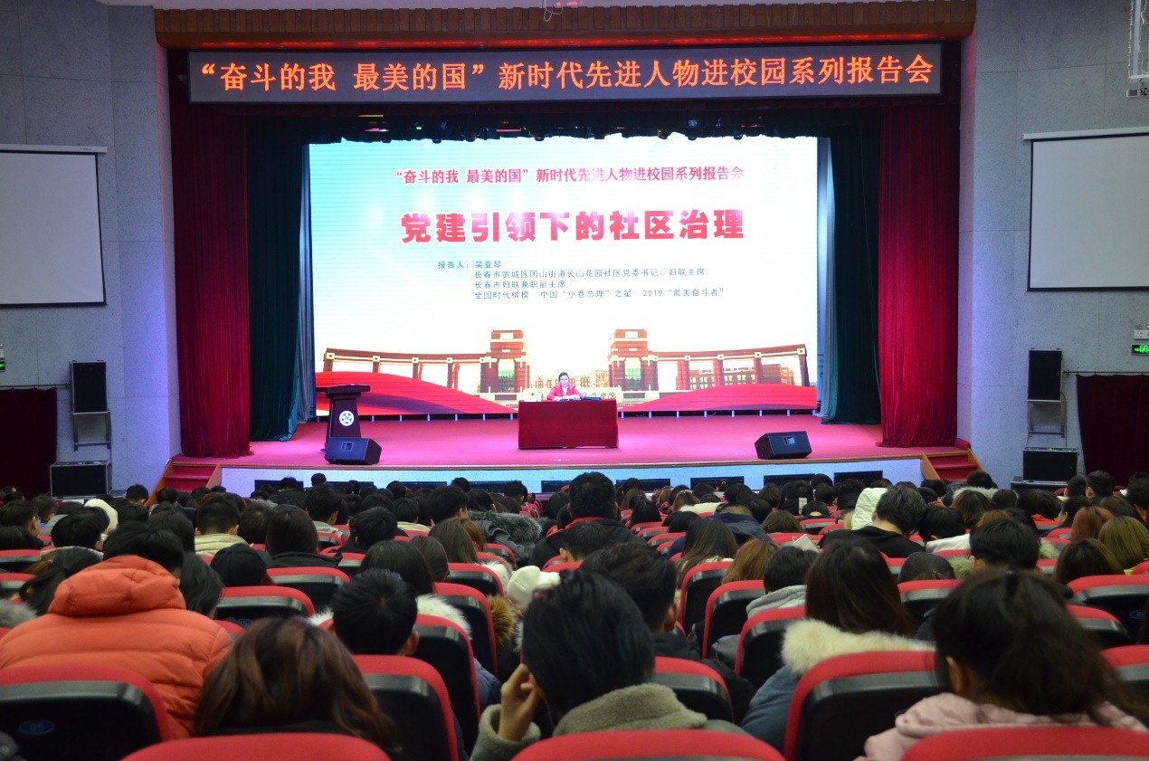 12月11日,“奋斗的我 最美的国”新时代先进人物进校园首场报告会在学校报告厅举行。