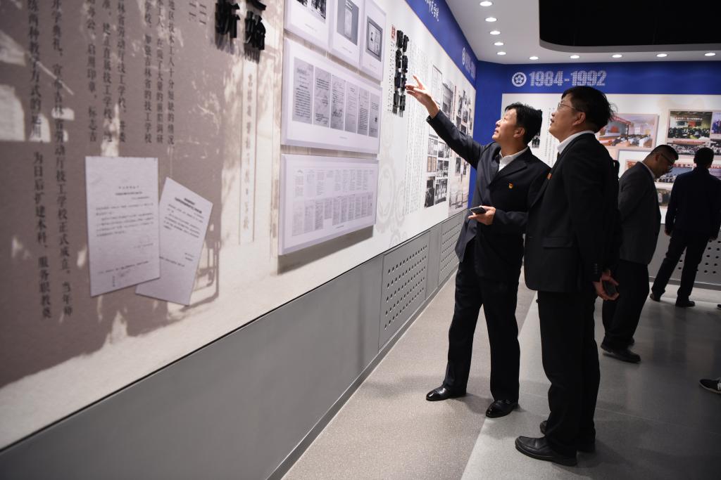 杨晓东在致辞中对校史馆建设策划者、设计者、施工者表示感谢,他指出,校史馆是学校的编年史,是陈列学校发展历史、展示学校办学历程和不同时代学校面貌的场馆;是学校传统与校园文化集中表现的舞台;是学校教育教学成果的荣誉展示,更是学校文化建设的重要载体,是学校办学思想不断发展的源泉,是激励师生共同成长的重要土壤,是实施素质教育的重要基地。校史馆的建设,有利于促进学校传承和发扬优良的教育教学传统,有利于学校不断积淀校园特有文化、创新办学特色,有利于鼓舞学校士气、以不竭的精神动力迎接未来的挑战,有利于增强校友对母校的认同感和凝聚力,有利于吸引更多人关注学校的建设和发展,为学校建设创造更为有利的条件。今后,beat365官网要把参观校史馆作为入校教育的重要内容,把“工师传统与工师精神”作为新入校师生的第一课,真正使每位师生都能深入了解工师的历史、人物和精神。使“笃学、敬业、求是、创新”的校训成为全体工师人自觉的文化追求,使“精益求精 崇师尚学”的工师精神成为全体工师人永恒的精神坚守。我们要以校庆为契机,以建设特色高水平大学为契机,努力打造体现社会主义核心价值观念、秉承学校传统、蕴涵学校特色、彰显学校优势、体现学校精神且师生满意的大学文化,努力建设“人文工师、美丽工师、活力工师、幸福工师”