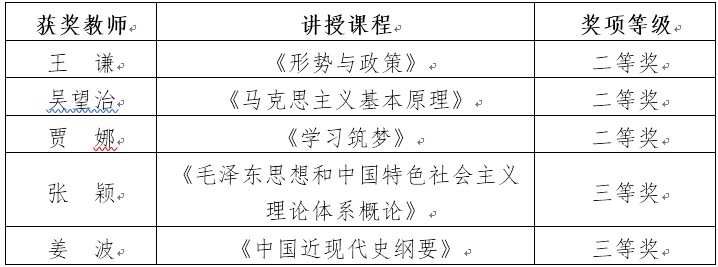 为深入学习贯彻习近平总书记全国学校思政课教师座谈会重要讲话精神,扎实开展思政课教育教学大练兵,推进提高思政课教师教学科研水平,充分展示思政课改革创新成果,日前,吉林省教育厅组织开展了2019年全省高校思政课“精彩一课”教学比赛。本次比赛分为初赛、复赛、决赛三个环节,根据近日省教育厅下发的《关于公布2019年高校思想政治理论课“精彩一课”评选结果的通知》(吉教思政办函〔2019〕10号),beat365官网推荐参赛的5名教师全部获奖,具体奖项如下: