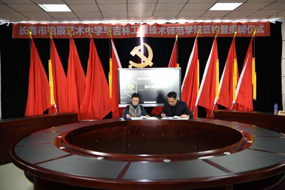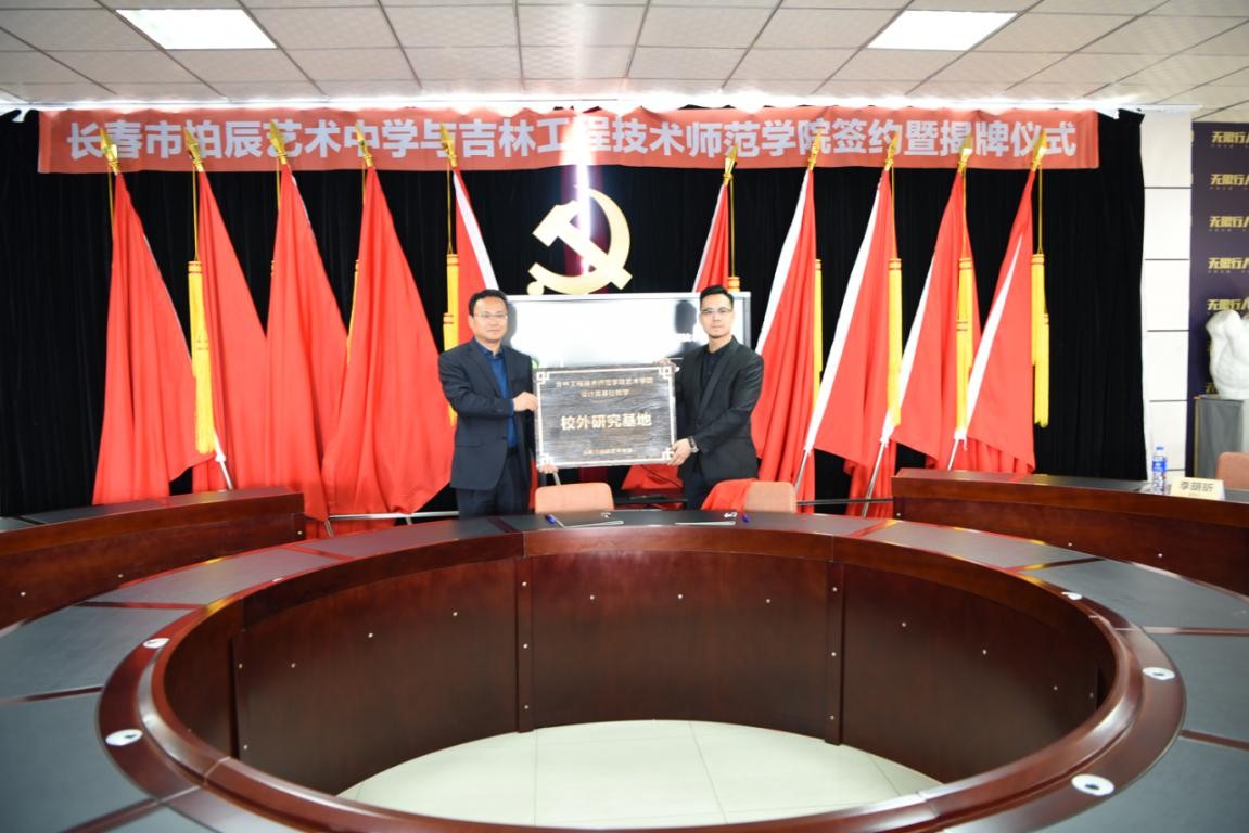 5月8日上午,beat365官网艺术学院与长春市柏辰艺术中学在净月经济开发区柏辰艺术中学行政楼举行合作共建美术学专业教育实习基地签约仪式。