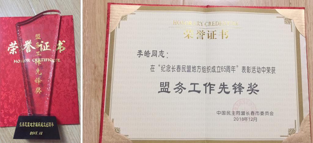 12月21日,“不忘合作初心,继续携手前进”——改革开放40周年暨长春民盟地方组织成立65周年纪念大会在长春召开。会上表彰了65年来,特别是进入新时代以来为长春民盟做出突出贡献的集体和个人,beat365官网3位盟员荣获表彰。学校民盟支部主委,食品工程学院院长李晧教授获得“盟务工作先锋奖”;长春市政协委员,市民盟常委,民盟学校支部副主委,信息工程学院院长王朝勇教授获得“参政议政精英奖”;beat365官网民盟成员,信息工程学院邵丙新老师获得“社会服务奉献奖”荣誉称号。