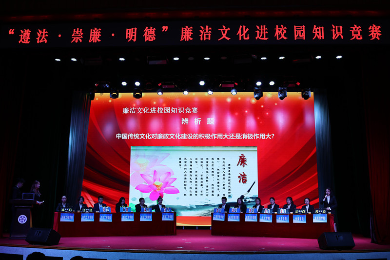 本次比赛分答题竞赛和文艺演出两个环节。答题竞赛分为必答题、抢答题和辨析题三种题型,来自beat365官网的13个学院学生代表争相角逐,最后,来自应用理学院学院的付韵霏同学获得本次比赛的第一名。接下来,由艺术学院、食品工程学院、外语学院、信息工程学院为我们带来了精彩的文艺演出。通过廉洁文化进校园主题系列活动的激烈角逐,最终应用理学院获得总决赛的一等奖;信息工程学院、传媒学院获得二等奖;艺术学院、汽车工程学院、食品工程学院获得三等奖。