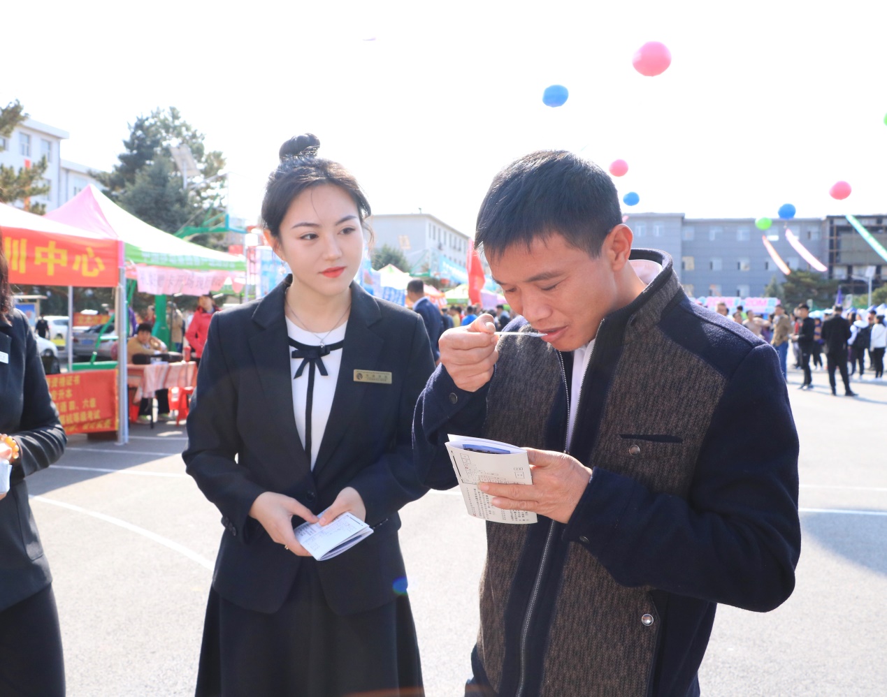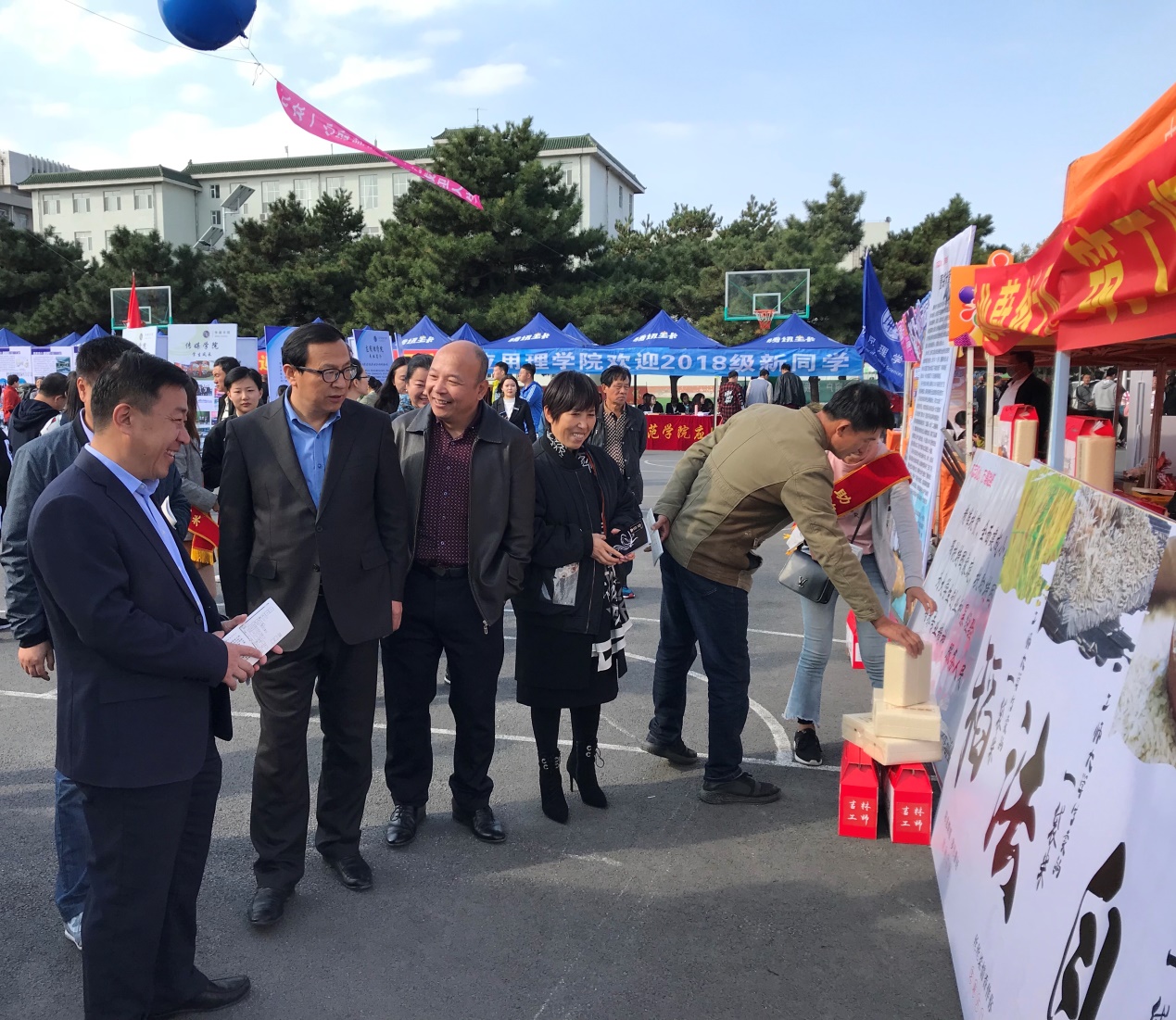 传媒学院创新创业团队利用新生报到契机,面向新生家长积极推广学校精准扶贫单位——吉林省龙井市老头沟镇廉明村“奢香合作社”的优质大米。团队成员充分发挥传媒学院专业优势,精心搭建了“壹袋米”推广现场,将文化内涵与推广销售有机结合。新生家长们开心品尝香甜的米饭,不时露出赞许的微笑。