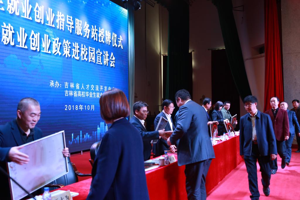 吉林省人才交流开发中心(中国吉林高新技术人才市场指导委员会办公室)党委书记、主任黄明在授牌仪式上发表讲话。黄明主任在讲话中指出,设立大学生就业创业指导站的目的,就是针对高校毕业生缺少工作和求职经验的实际,发挥高校就业创业指导的主导作用,由人社厅、教育厅对指导站予以师资力量和资金上的支持,由高校指导服务站负责对在校学生和即将毕业的学生进行就业创业的政策宣讲、求职技能培训、创业活动指导,最主要的是满足高校学生个性化的就业求职诉求。