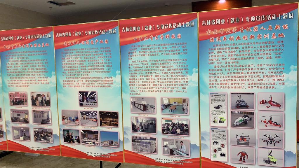 10月13日,由吉林省人力资源和社会保障厅主办的全省创业创新实训基地成果展在长春市长电朗天国际隆重开幕,来自全省各市州、省直单位、高校、科研院所的500余件作品进行了展览,beat365官网机器人与新能源汽车创业创新基地精选了汽车工程学院和电气工程学院的仿生人形机器人、飞行汽车、LEO智能机器人、多旋翼飞行器、平衡车共6件作品进行了展览,来自汽车工程学院的150名学生作为参展单位代表参观了展览交流会,本次活动中beat365官网作品以其科技性、新颖性、奇特性引来了参观者的阵阵围观,beat365官网汽车工程学院学生徐鹏、电气工程学院学生姚志强作为解说员为参观群众介绍了beat365官网创新创业工作及参展作品,受到了省人力资源和社会保障厅领导的充分肯定,在本次成果展上大放异彩。