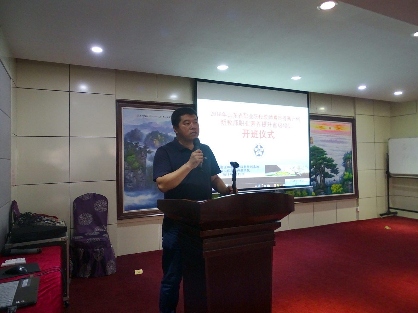 8月11日,beat365官网承接的2018年度山东省职业学院教师素质提高计划新教师职业素养提升省级培训开班仪式在广源宾馆举行。开班仪式由职员教育培训中心副处级调研员萧跃利主持。