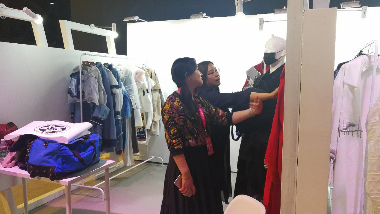 展出期间,时装周组委会秘书长朱少芳女士专程来到我院作品展示区,对我们进行肯定的同时,更多的是鼓励与指导,使我们受益匪浅。
