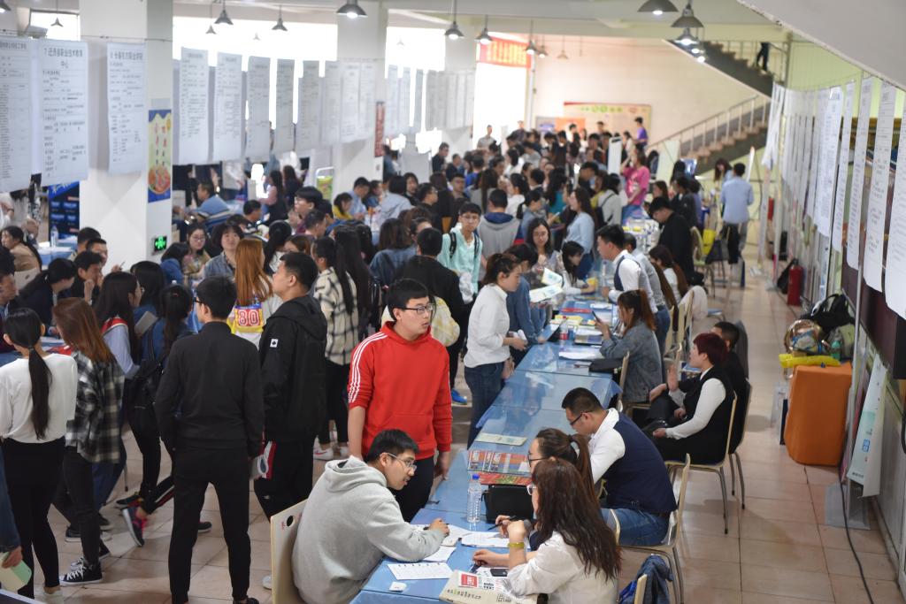 5月11日上午,吉林省应用型人才专场招聘会暨吉林工师2018届毕业生春季供需见面洽谈会在学校饮食服务中心隆重召开。此次洽谈会吸引了吉林吉刚集团、吉林正大实业、吉林敖东医药、吉林建龙钢铁、吉林文投集团、中国联通吉林分公司等省内名优企业参会,招聘会上,230家企事业单位共提供就业岗位2434个,意向签约523人。长春市人才中心副主任仲伟仁,beat365官网领导栾立明、杨晓东、曹国亮、宋立军以及各学院毕业生领导小组成员参会并与用人单位进行了广泛交流。