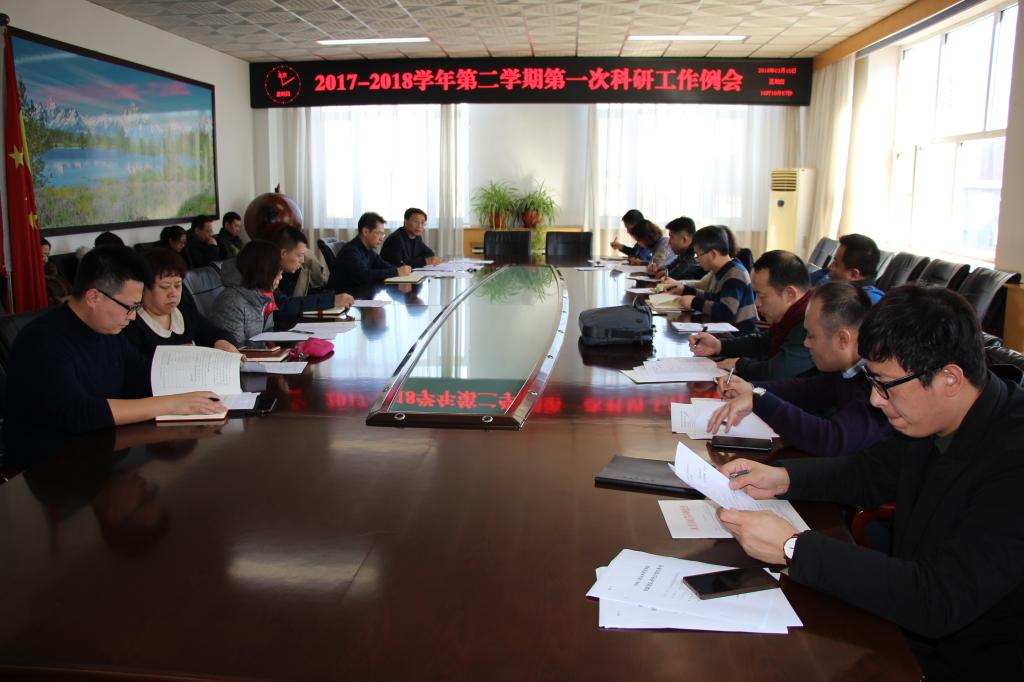 3月15日下午,学校在第一会议室召开2017—2018学年第二学期第一次科研工作例会,副校长宋立军主持会议。各院(部)主管科研副院长(副主任)、科研工作联系人,科研处全体人员参加会议。
