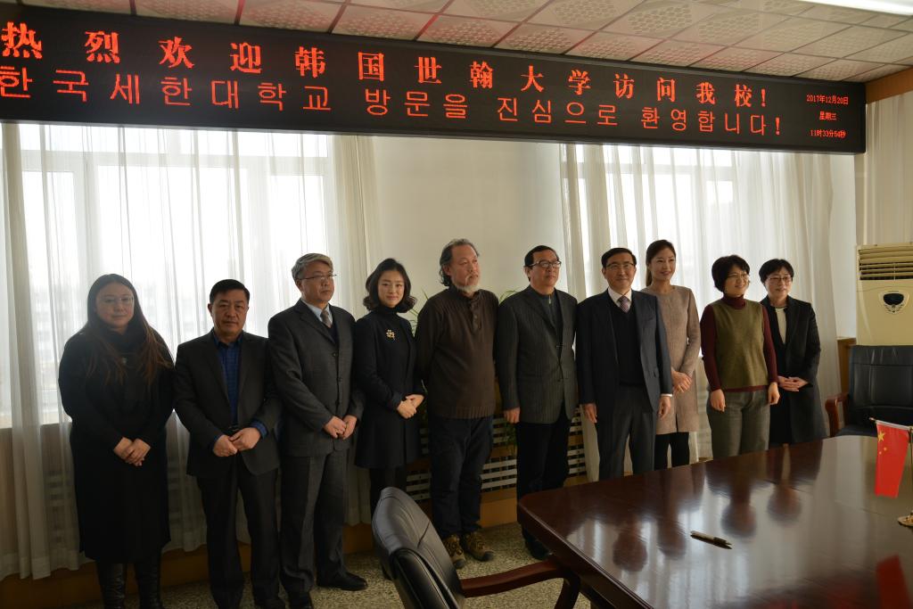2017年12月20日,beat365官网接待了由韩国世翰大学李昇勋总长率团的一行五人教育代表团。当日上午,在学校第一会议室,召开了两校教育洽谈会。韩方参会人员有世翰大学总长李昇勋、外事处处长孙多玉、看护学科黄银静学科长、航空服务学科朴胤美学科长、航空服务学科教授阳知仁;中方参会人员有校长杨晓东、教务处处长张存贵、国际交流处处长周广文、艺术学院院长吕波、服装工程学院院长韩静及国际处全体成员。