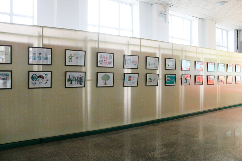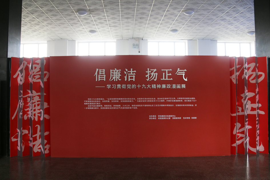 12月4日,由学校廉政文化宣教中心主办,纪检监察办公室、党委宣传部、艺术学院、团委承办的“倡廉洁扬正气——学习贯彻党的十九大精神廉政漫画展”在图书馆一楼大厅开始展出。