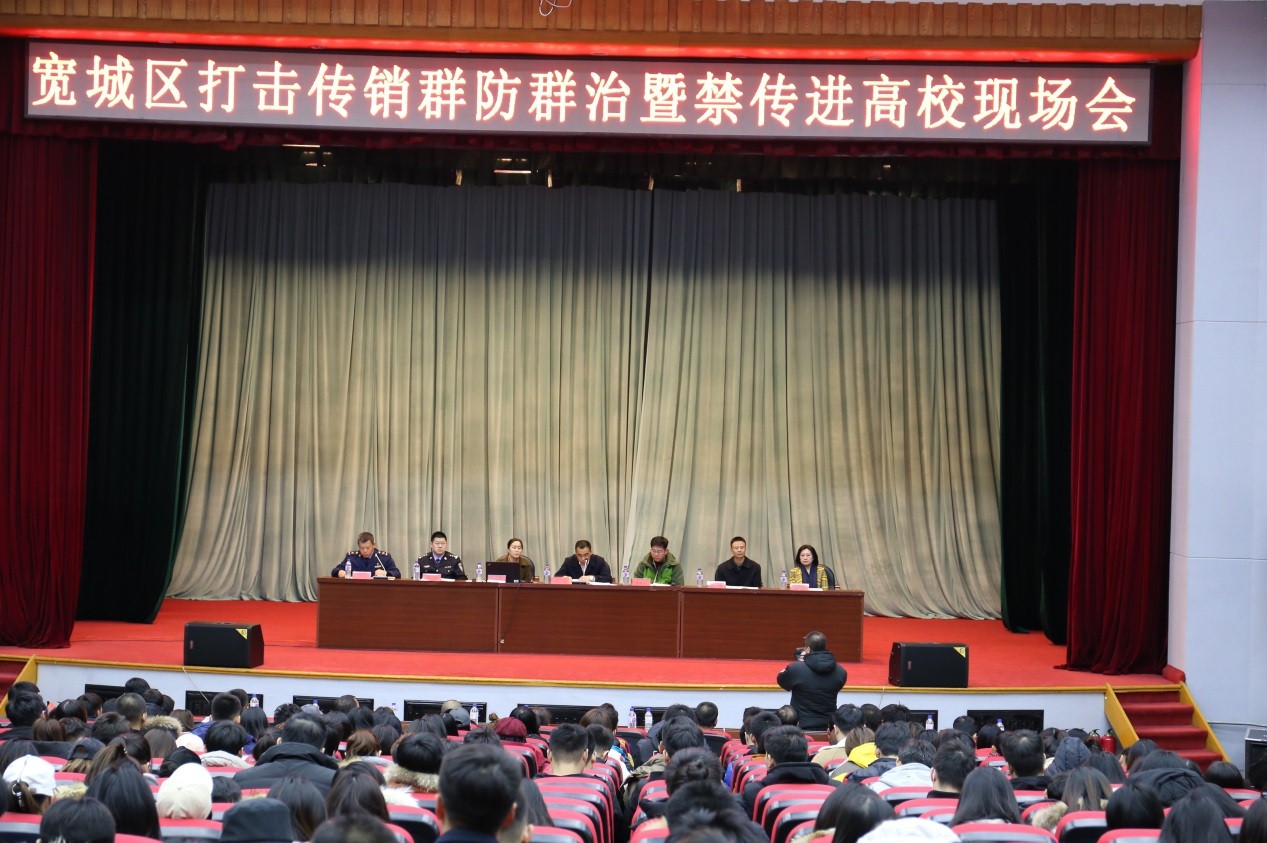 上午8:00,宽城区打传防控政务平台现场宣讲会在报告厅如期举行。长春市工商局、宽城区工商局、宣传部、政法委、市公安局宽城区分局的领导莅临了会场。长春市工商局直销分局副局长李晓翠做了打传宣讲,长春市工商局宽城工商局党委书记王亘宣读了《宽城区加强打传防控体系建设完善群防群治工作的实施方案》,部分毕业生认真倾听了宣讲。会后,长春市工商局宽城工商局还来到招聘会现场开展了创业就业咨询和打击传销咨询。