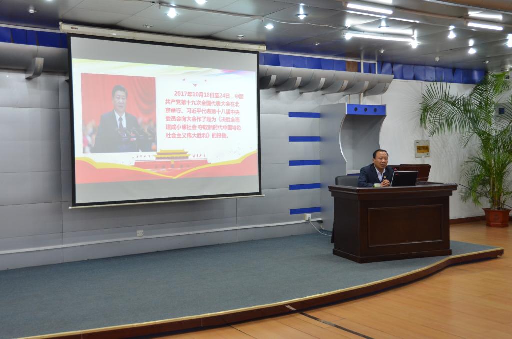 陈景翊指出,党的十九大报告是在全面建设小康社会的决胜阶段和中国特色社会主义进入新的历史时期召开的重要会议,是中国共产党面向新时代的政治宣言和行动纲领。从政治层面、思想层面、理论层面、实践层面、历史层面深入剖析了十九大报告的重要意义及地位。